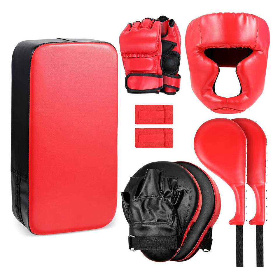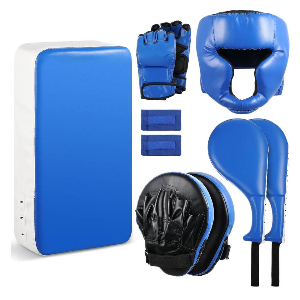 ชุดอุปกรณ์ชกมวย 10 in 1 พร้อมแผ่นรองเตะ แผ่นโฟกัสสำหรับเทควันโด ถุงมือชกมวย MMA พร้อมอุปกรณ์ป้องกันศีรษะและสายรัดข้อมือ