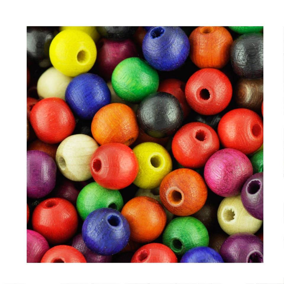 ลูกปัดไม้ทรงกลมขนาด10มม. ผลิตด้วยมือผลิตจากอินเดียและลูกปัดไม้หลากสี