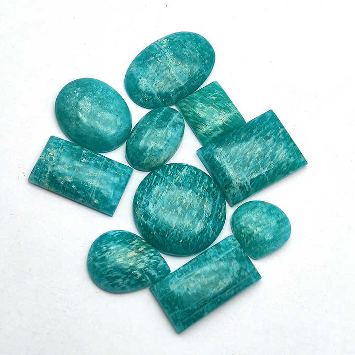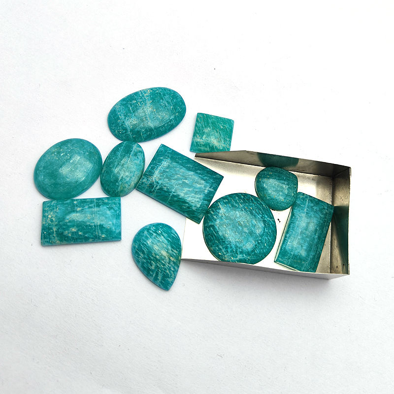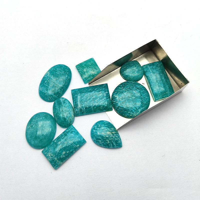 ล็อตหินอะเมซอนไนต์ธรรมชาติ ขนาดและรูปทรงผสม แบบคาโบชอง