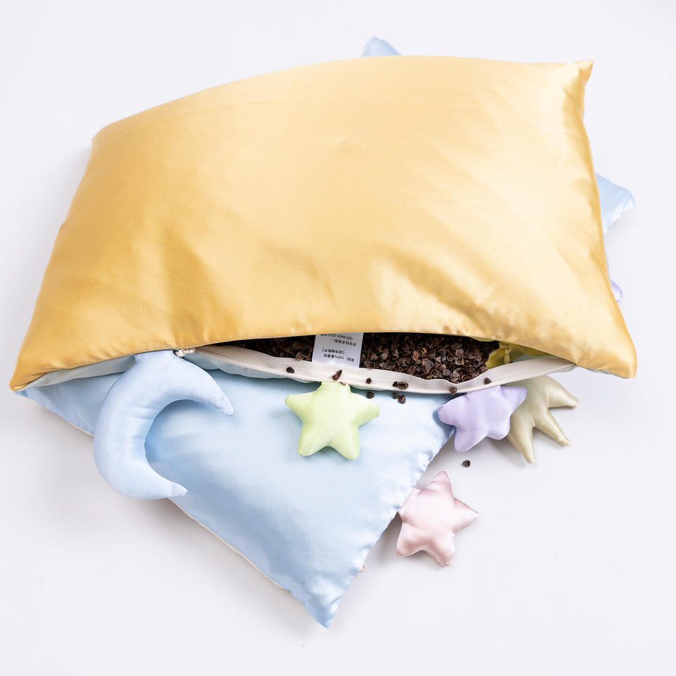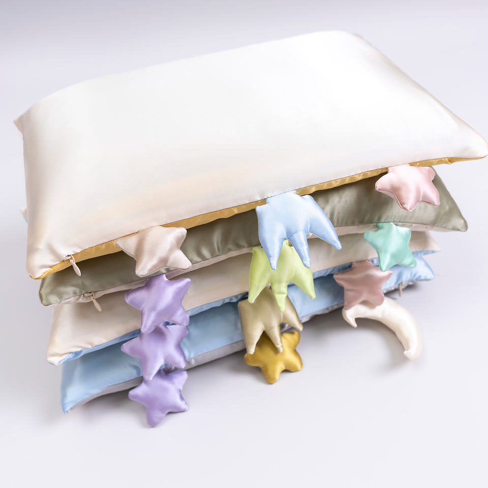 หมอนไหมมัลเบอร์รี่ 100% เกรด 6A น่ารักสำหรับเด็ก หมอนไหมแท้ ตกแต่งรูปดาวและพระจันทร์ ถุงในถอดออกได้ ไส้ใยบัควีท