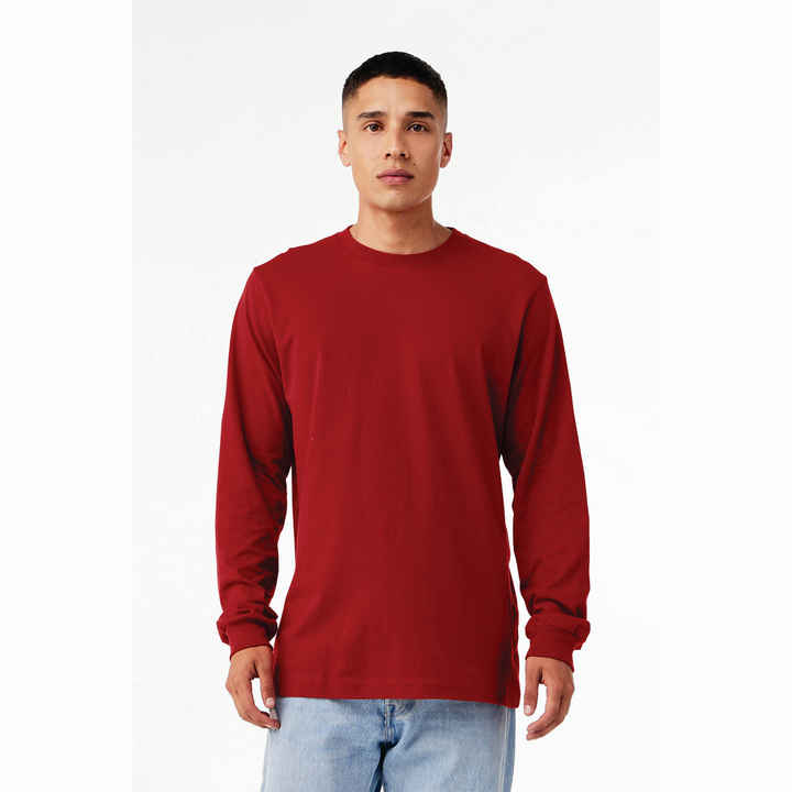 Airlume เสื้อยืดแขนยาวรุ่น32ซิงเกิล100%,เสื้อคอลูกเรือแบบคลาสสิกสีแดงผ้าใบขนาด4.2ออนซ์