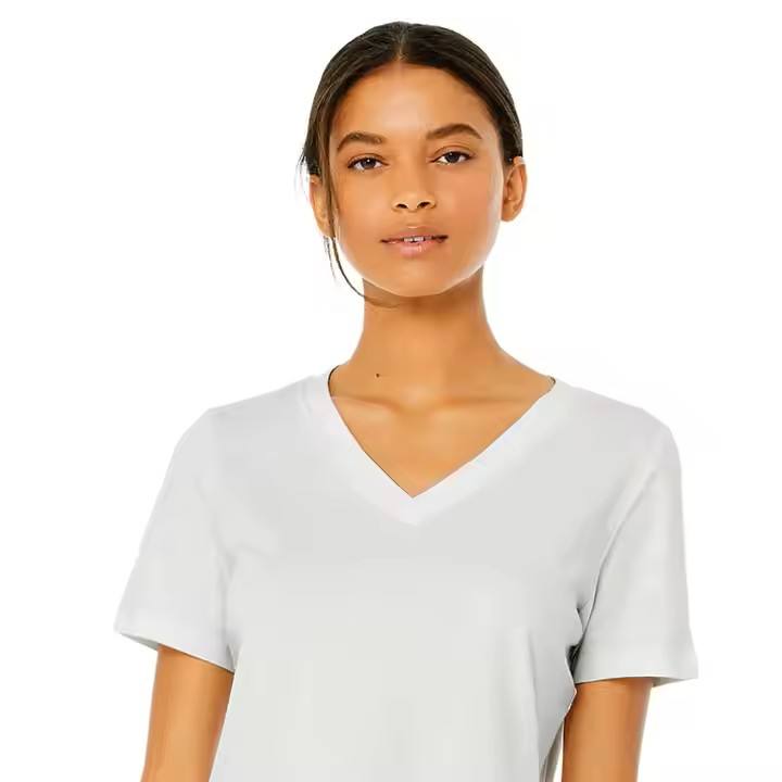 เสื้อยืดคอวีแขนสั้นสำหรับผู้หญิงผ้าคอตตอนคอมบิกและแหวนปั่น100% ผ้าฝ้าย32ออนซ์สีขาววินเทจ4.2ออนซ์