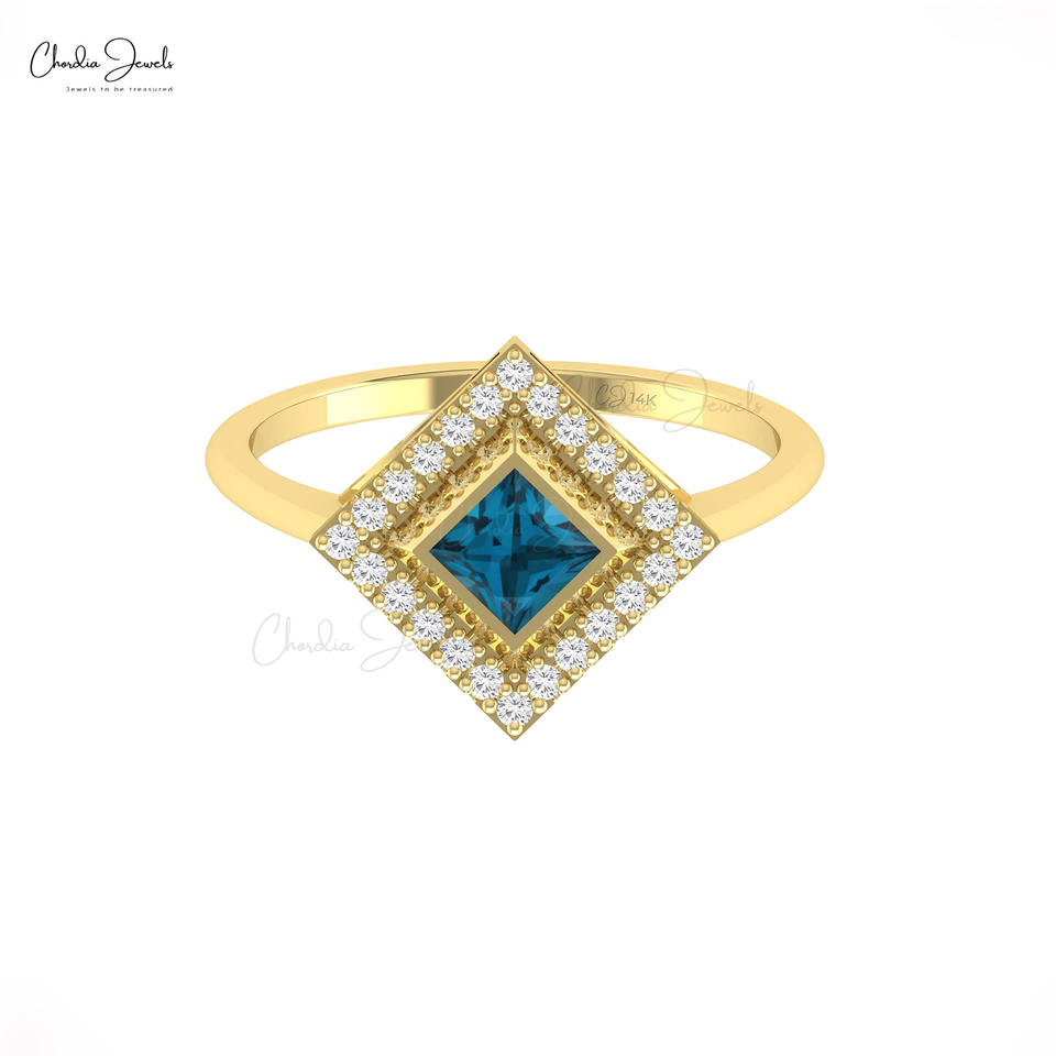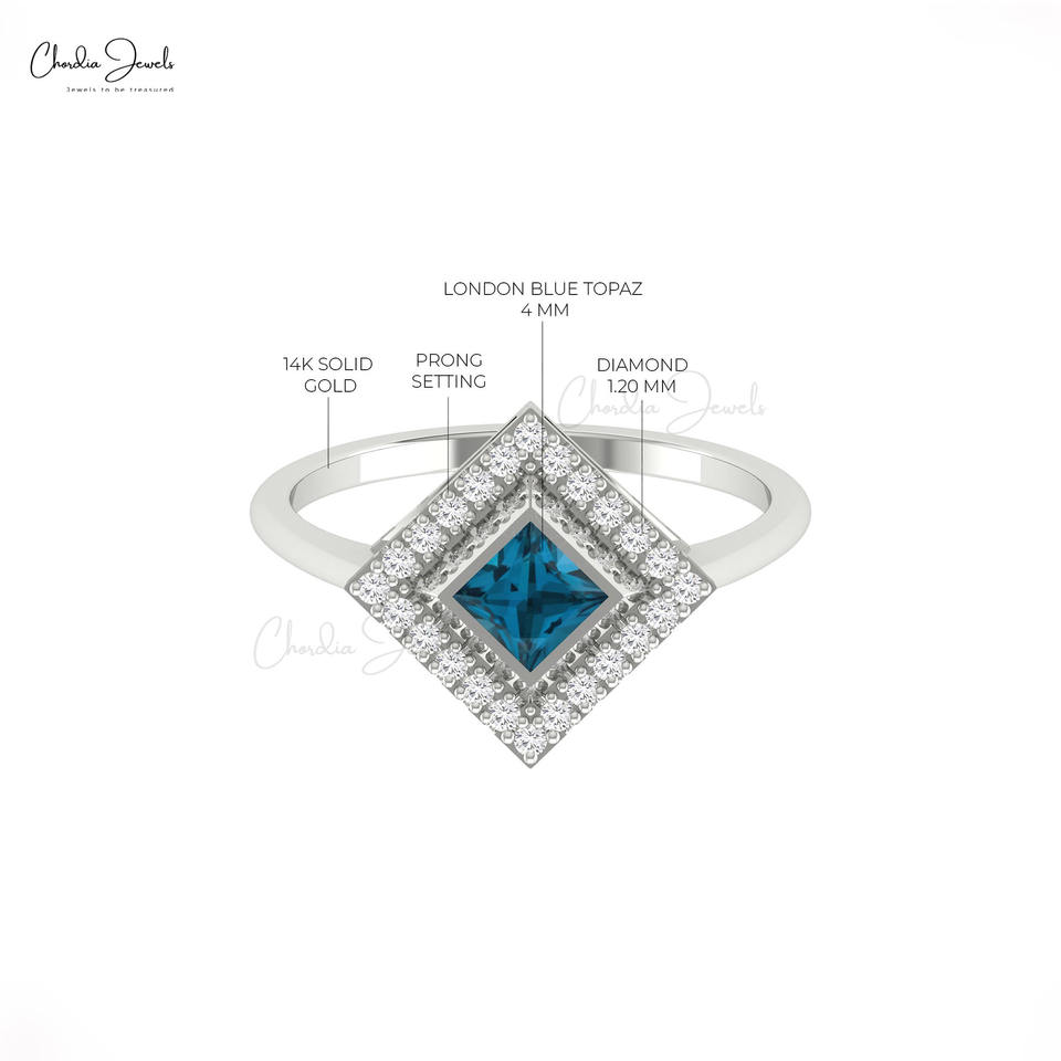 แหวนทองคำแท้ 14k ประดับเพชร G-H ทรงสี่เหลี่ยม 4 มม. ประดับพลอยโทแพซสีน้ำเงินลอนดอน สำหรับงานปาร์ตี้ ราคาพิเศษ
