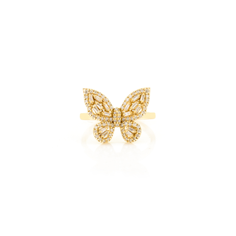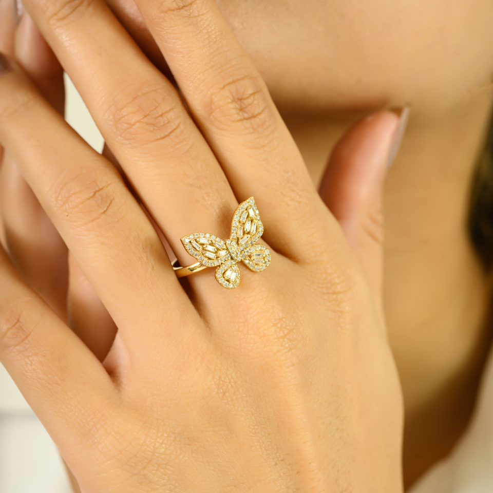แหวนผีเสื้อเพชรเต็มเม็ดแท้หรูหราของแท้ของ100% เครื่องประดับทอง18K สีเหลืองสำหรับผู้หญิงขายส่ง