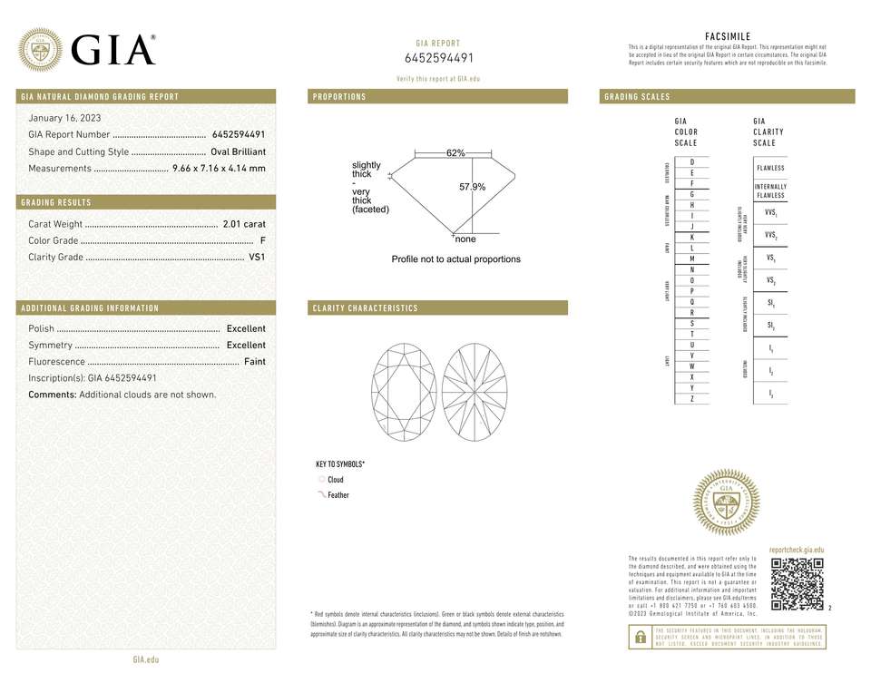 VS1วงรีแท้100% เพชรทรงหลวม2.01กะรัตเกรด F เพชรแท้เกรด GIA หลวมได้รับการรับรองจากอินเดีย