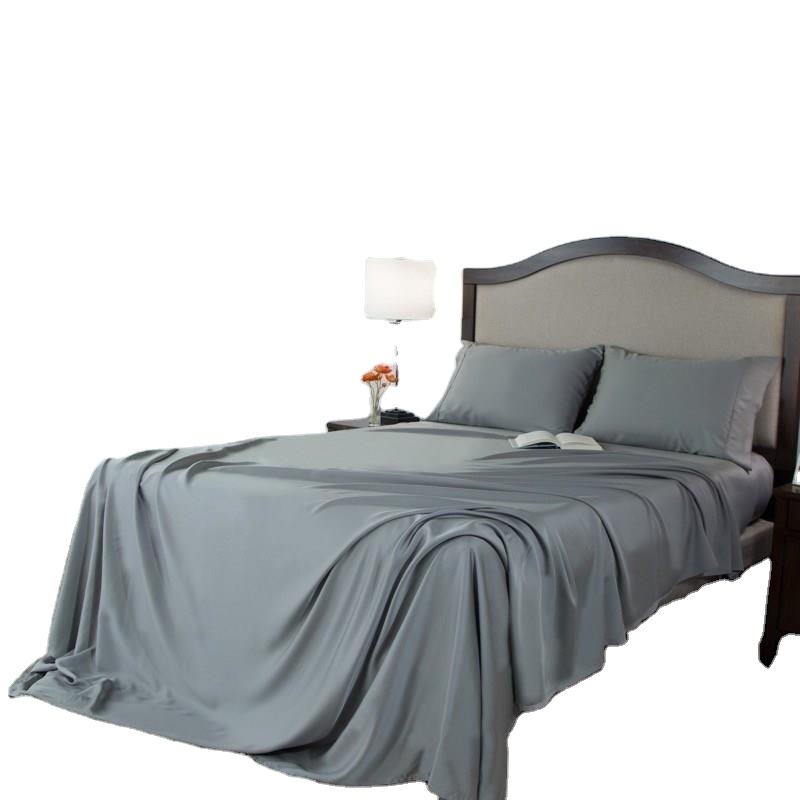ชุดผ้าปูที่นอน100% ทำจากไม้ไผ่300TC ผ้าระบายความร้อนสีเทาราชินีเป็นมิตรกับสิ่งแวดล้อมพร้อมกระเป๋าลึกที่นอนสูงถึง16นิ้ว4ชิ้น