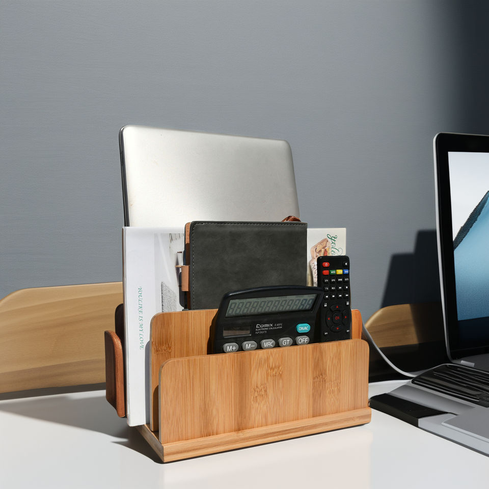 100% Bamboo Wood 4-Slot Multifunction Desktop Organizer Countertop File Folder Office Document Letter Envelope Drawer Organizers