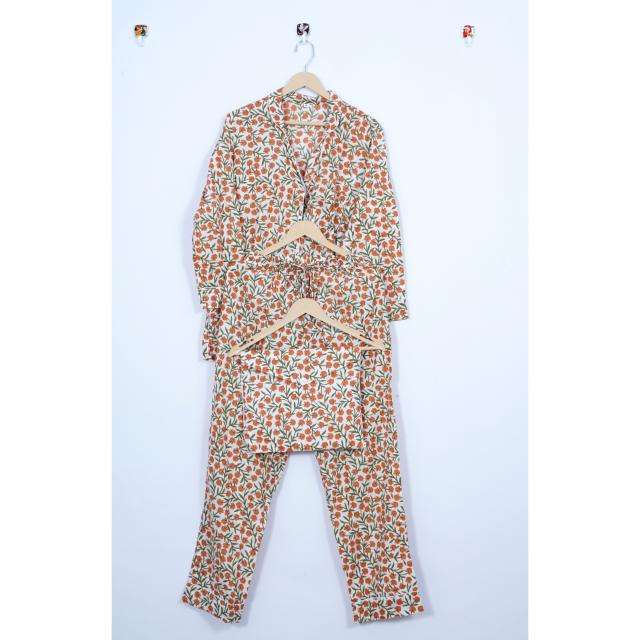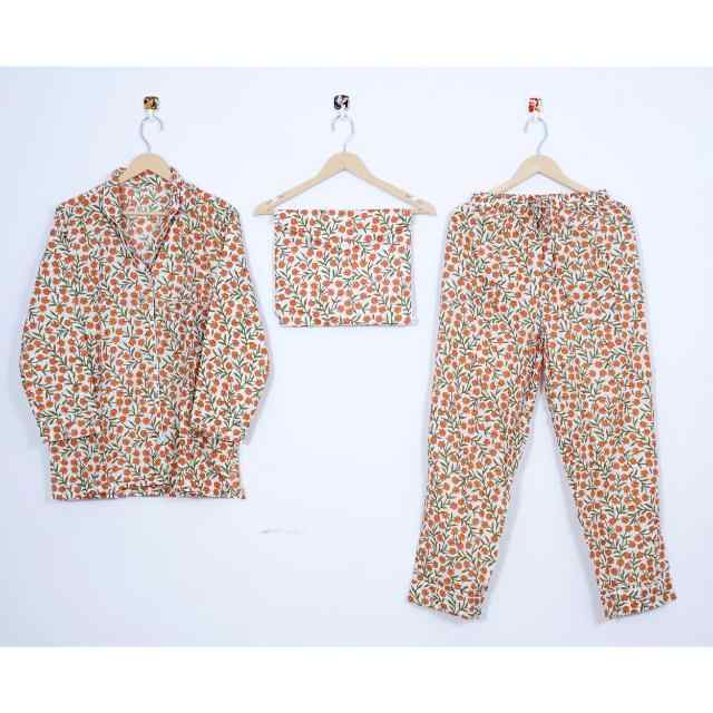 ชุดนอนผู้หญิงลายดอกไม้สไตล์วินเทจ คุณภาพดีเยี่ยม ผ้าสแปนเด็กซ์/โพลีเอสเตอร์ ระบายอากาศได้ดี เป็นมิตรกับสิ่งแวดล้อม แบบเต็มตัว