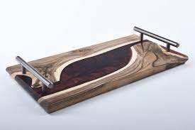 100% ที่ดีที่สุดขายส่ง Diy อีพ็อกซี่เรซิ่นถาดเสิร์ฟไม้ที่มีมือจับโลหะโรงแรมและร้านอาหารเครื่องครัวถาดกาแฟ