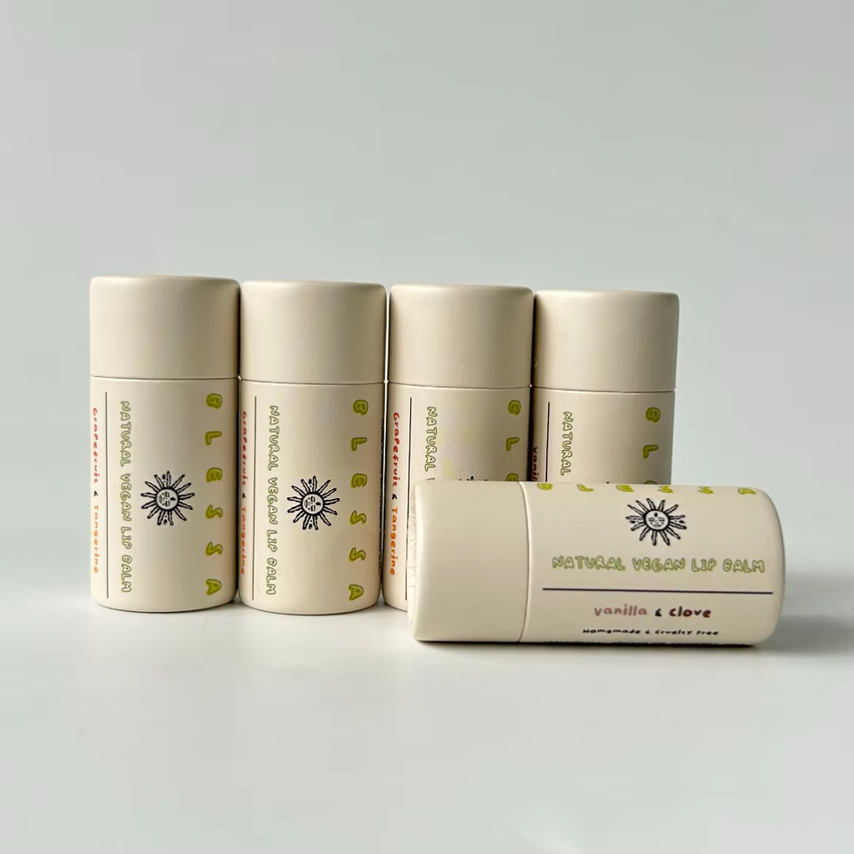 ลิปบาล์มแบบย่อยสลายได้หลอดกระดาษรีไซเคิลบรรจุภัณฑ์กระดาษแข็ง100% เกรดสูงทำด้วยมือดีไซน์ตามสั่ง