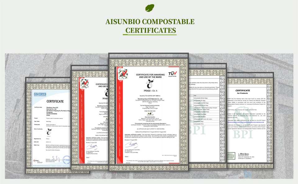 100% ถุงช้อปปิ้งพลาสติกย่อยสลายได้ EN13432ถุงโพลี pbat plat