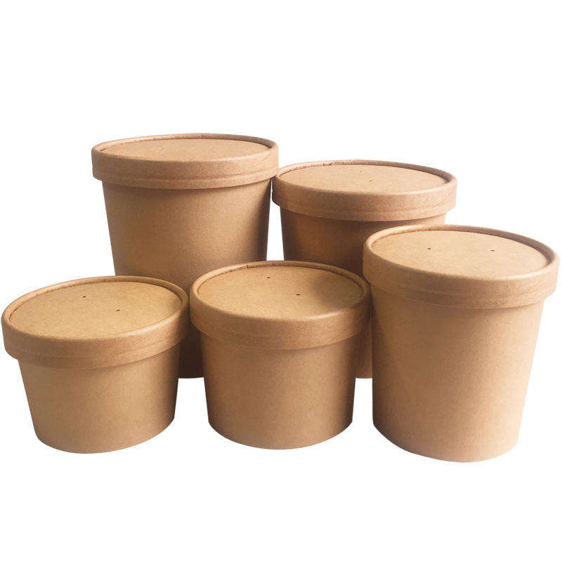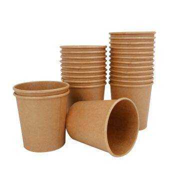 บรรจุภัณฑ์ถ้วยกระดาษทำจากกระดาษคราฟท์แบบใช้แล้วทิ้งย่อยสลายได้100% สำหรับดื่มน้ำร้อนพร้อมฝาปิด
