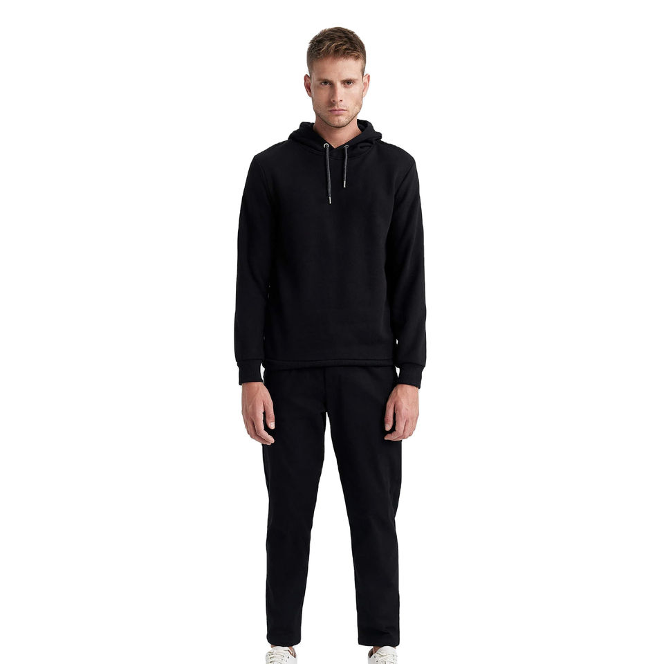 100% Black Cotton Pullover Hoodie for Men Solid Pattern Embroidered Plain Dyed Custom Print Thermal Fleece Sweatshirt for Winter