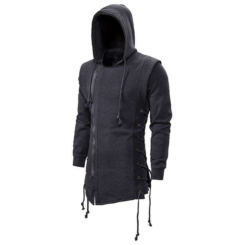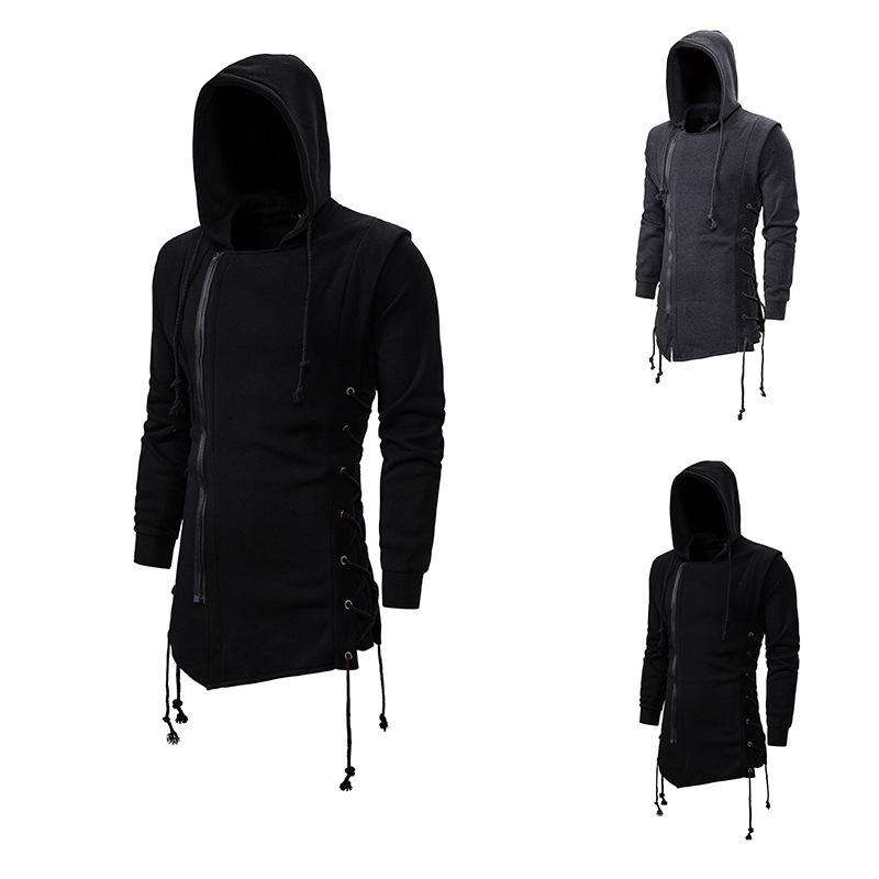 100% ใหม่ล่าสุดเสื้อฮู้ดผู้ชายยาวสีดำเข้มมีฮู้ดทรงหลวมเสื้อแจ็คเก็ตผ้าโพลีเอสเตอร์ใช้ได้ทั้งชายและหญิง3XL ไซส์