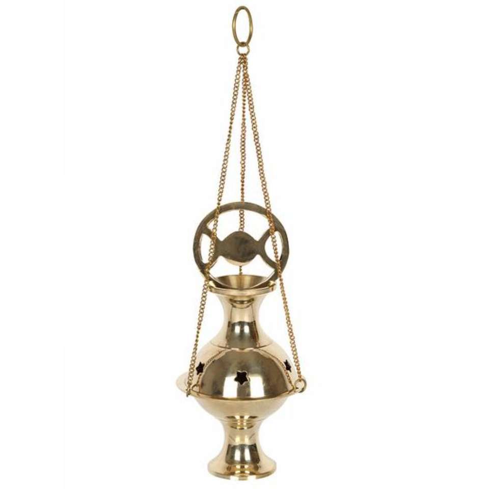 กระถางธูปโลหะหรูหราแบบแขวน3โซ่ทำจากทองเหลือง100% กลิ่นหอมสำหรับตกแต่งงานฝีมือสุดหรู