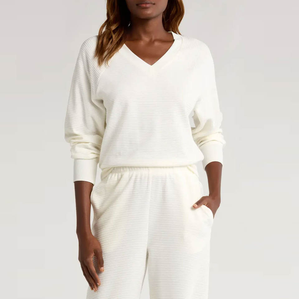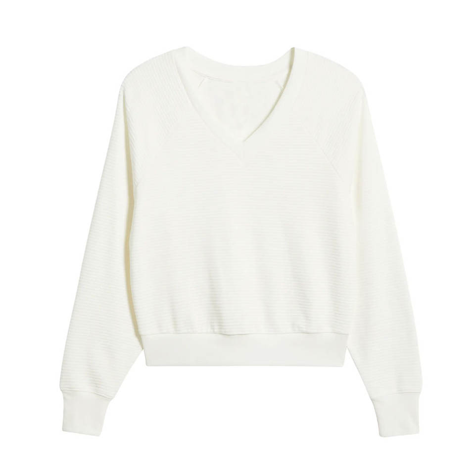 เสื้อสเวตเตอร์คอวีผู้หญิง ระบายอากาศได้ 100% สไตล์ลำลอง พร้อมโลโก้ด้านหน้า - ราคาสมเหตุสมผล
