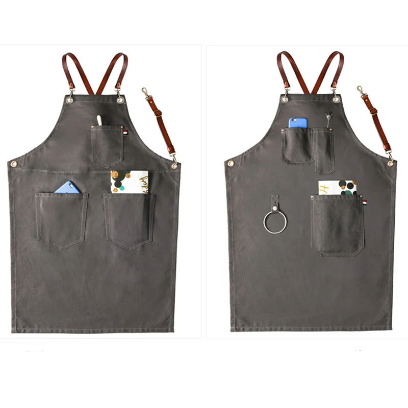 ผ้ากันเปื้อนผ้าฝ้ายผ้าใบ100% สำหรับเชฟและบาริสต้าใช้ซ้ำได้ใช้ในครัวภาพวาดสำหรับงานปาร์ตี้