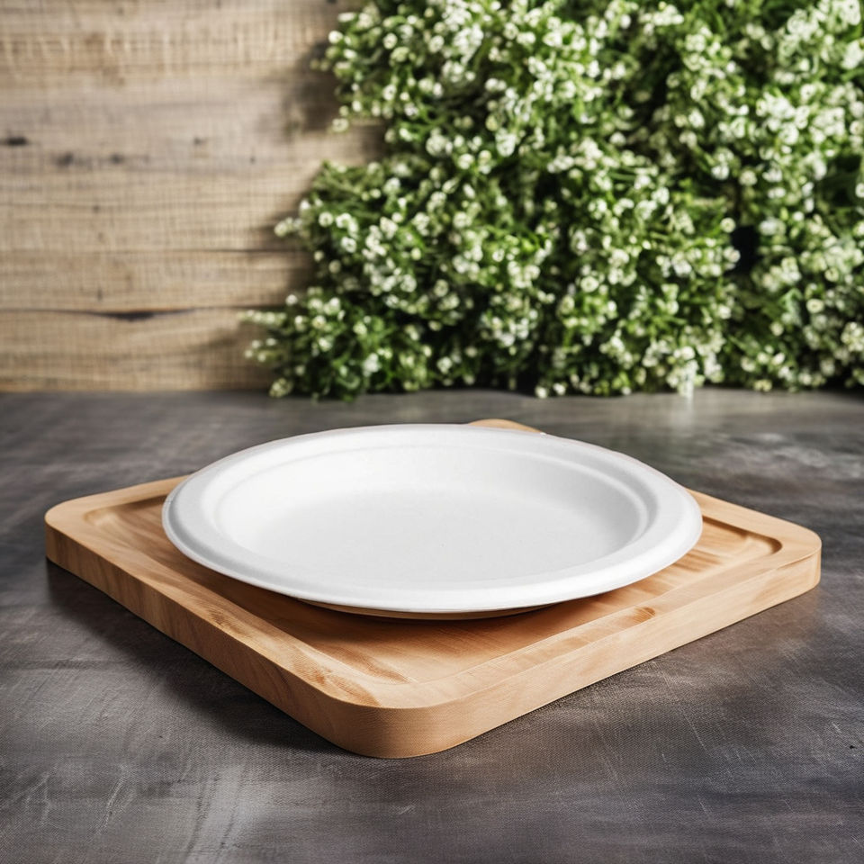 จานกระดาษทรงรีที่สามารถย่อยสลายได้100% 12นิ้วแผ่นชานอ้อยแบบใช้แล้วทิ้งที่เป็นมิตรกับสิ่งแวดล้อมสำหรับบาร์บีคิวปิกนิกปาร์ตี้
