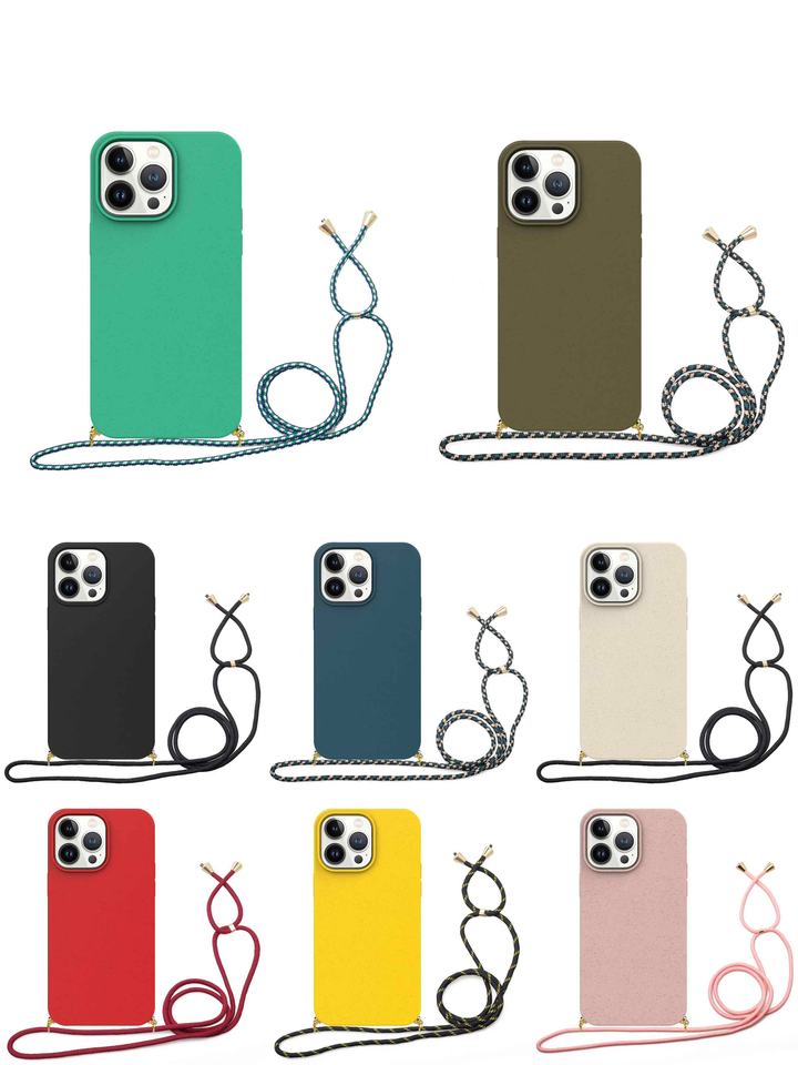 100% compostable ข้าวสาลีฟางย่อยสลายได้ทางชีวภาพเข็มขัดสายคล้องไหล่โทรศัพท์กันกระแทกสำหรับ iPhone 16 15 14 13 12 PRO MAX