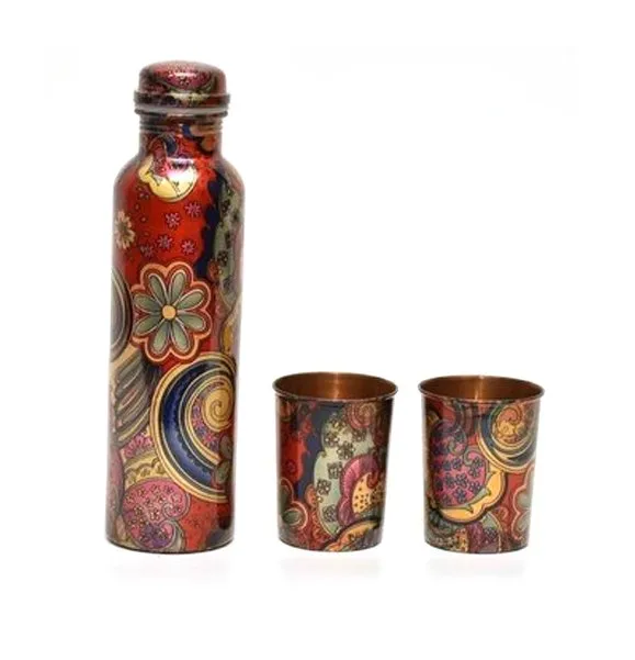 ขวดน้ำดื่มทองแดง100% สำหรับสุขภาพร่างกายที่ดีขวดพิมพ์ลายดอกไม้สีเคลือบที่แตกต่างกัน