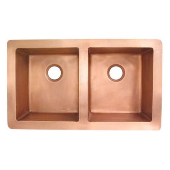 อ่างล้างจานคู่ทำจากทองแดงแบบ100% อ่างล้างจานคู่แบบทันสมัยเหนือเคาน์เตอร์ติดตั้งโดยไม่ต้องใช้ก๊อกน้ำ