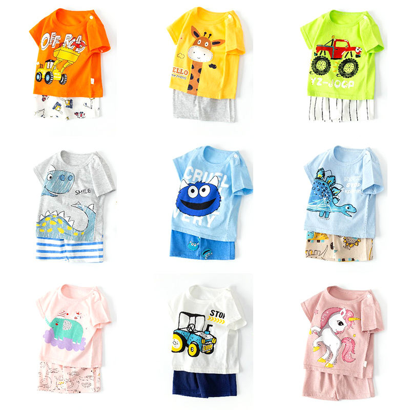ชุดเสื้อผ้าเด็ก 2 ชิ้น ผ้าฝ้าย 100% สำหรับเด็กวัย 0-6 ปี เสื้อและกางเกง ชุดน่ารักสำหรับเด็กผู้หญิง ชุดฤดูร้อนสำหรับเด็กผู้ชาย
