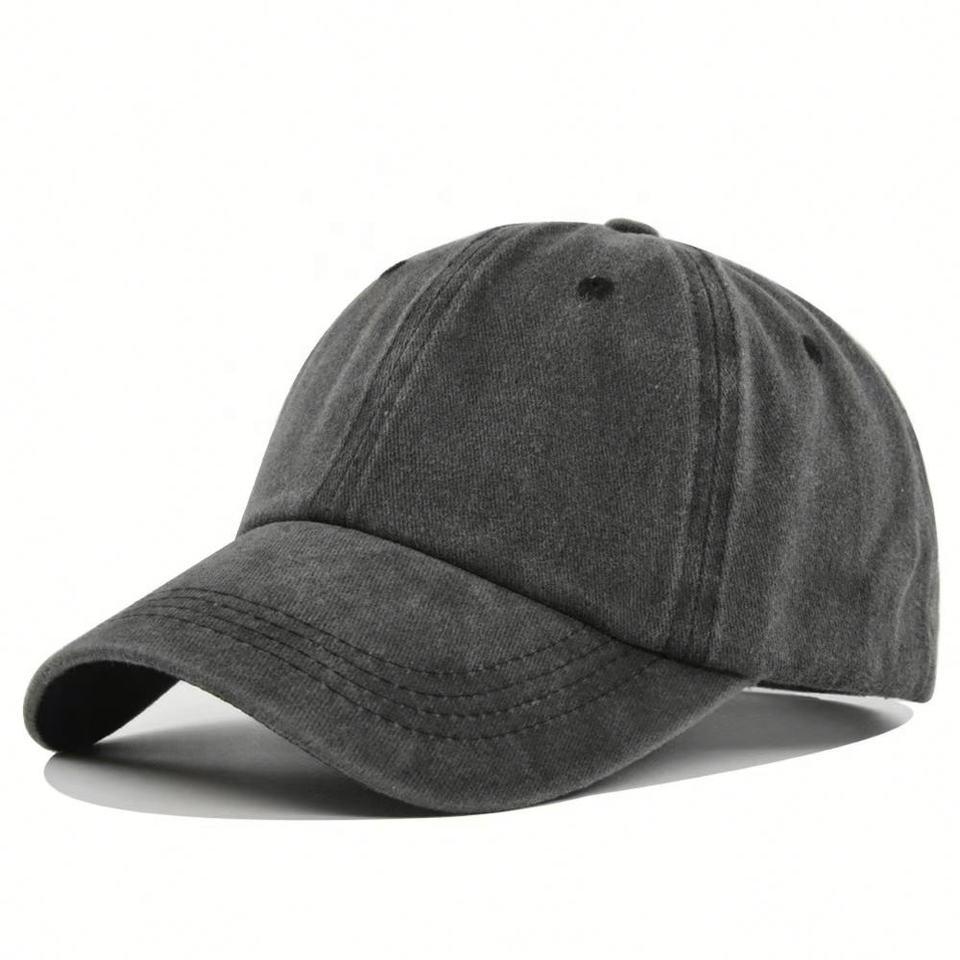 หมวกเบสบอล6แผงผ้าฝ้าย100%, หมวกแก๊ปกีฬาฟอกสีวินเทจสำหรับสวมใส่สบายๆพร้อมโลโก้ตามสั่ง
