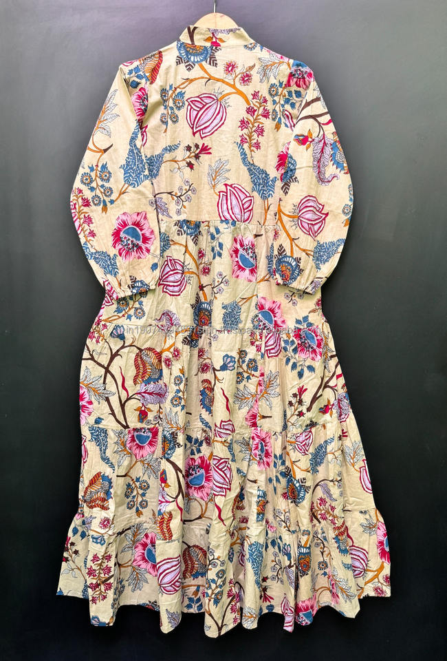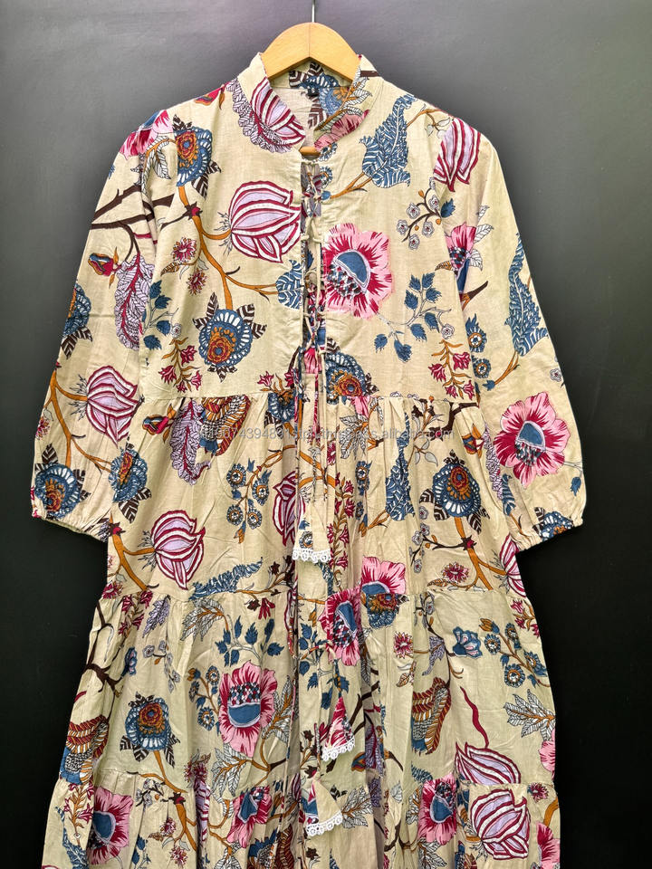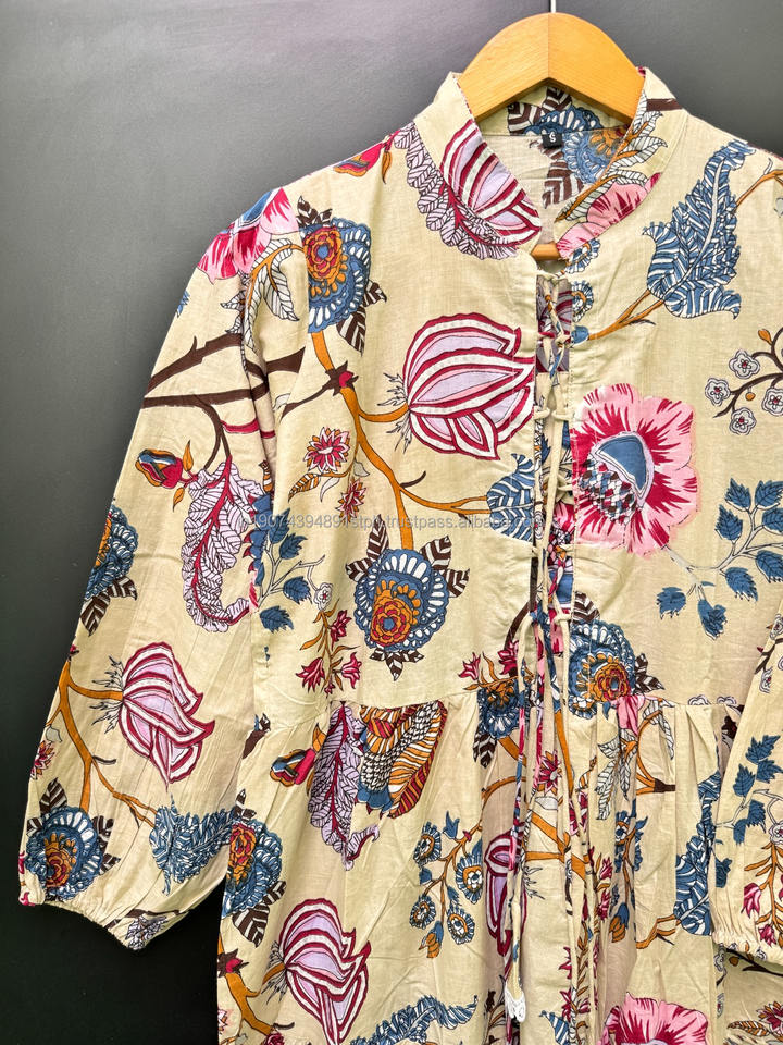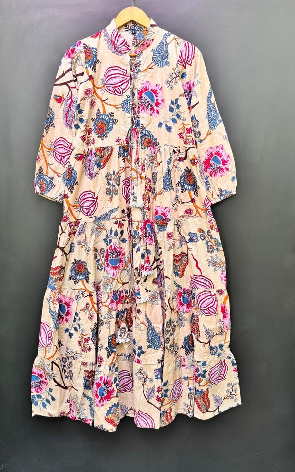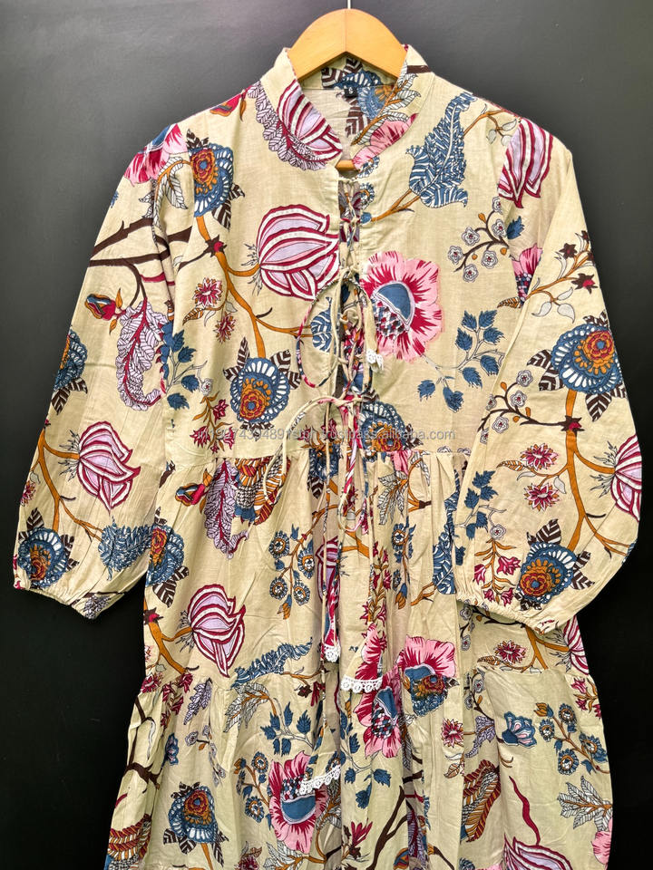 ชุดเดรสผ้าฝ้าย100% ทรงเอเอวผ้าคอตตอนพิมพ์ลายดอกไม้ชุดเดรสมิดิแต่งพู่สำหรับผู้หญิงใส่สบายระบายอากาศได้ดีมีสไตล์สำหรับฤดูร้อน