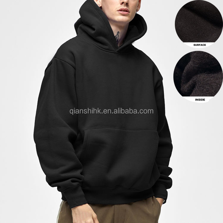 เสื้อฮู้ดผ้าฟลีซสำหรับผู้ชายผ้าฝ้ายหนาโอเวอร์ไซส์500Gsm วินเทจเสื้อมีฮู้ดผ้าฟลีซโอเวอร์ไซส์100%