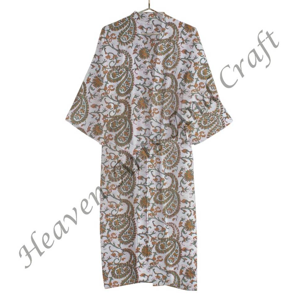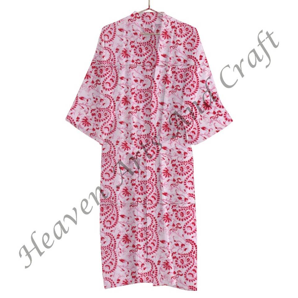 ชุดกิโมโนผ้าฝ้ายพิมพ์ลายดอกไม้สำหรับเป็นของขวัญวันคริสต์มาสเสื้อคลุมผ้าฝ้าย100% พิมพ์ลายดอกไม้แบบอินเดียล่าสุด