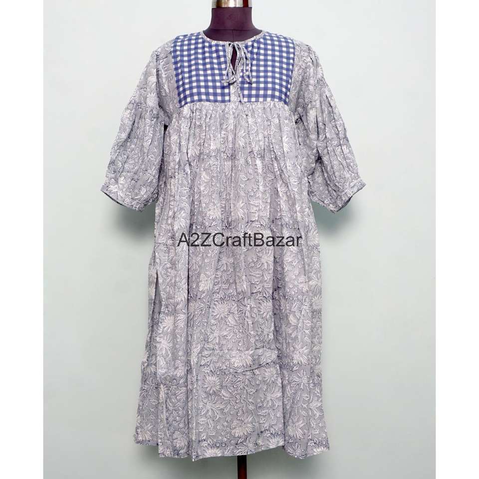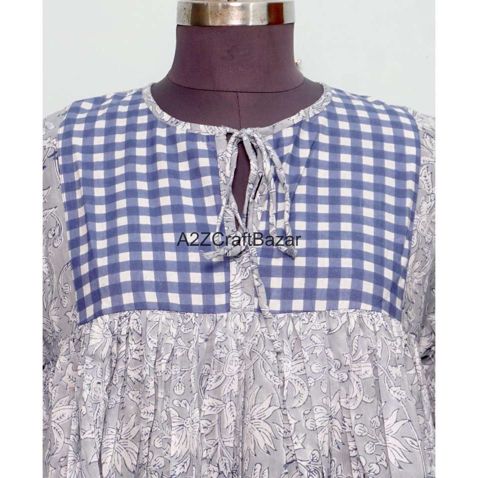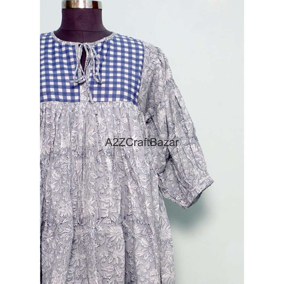 เดรสสั้นพิมพ์ลายบล็อกผ้าฝ้าย 100% สไตล์ลำลอง โบฮีเมียน เซ็กซี่ หรูหรา ดูดีแบบโบโฮ เรียบง่าย ใส่ได้ทุกฤดู-ฤดูใบไม้ผลิ ฤดูร้อน ฤดูใบไม้ร่วง