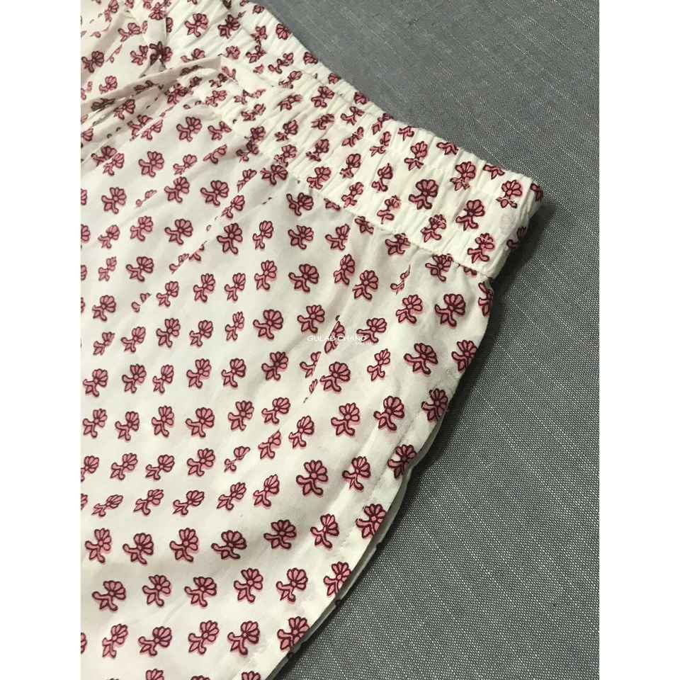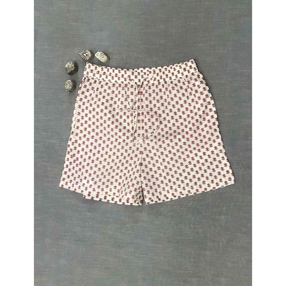 กางเกงขาสั้นผ้าฝ้ายพิมพ์ลายบล็อก 100% เอวกลาง ระบายอากาศได้ดี ตกแต่งด้วยงานปัก ทรงกางเกงขาสั้นแบบกระโปรง