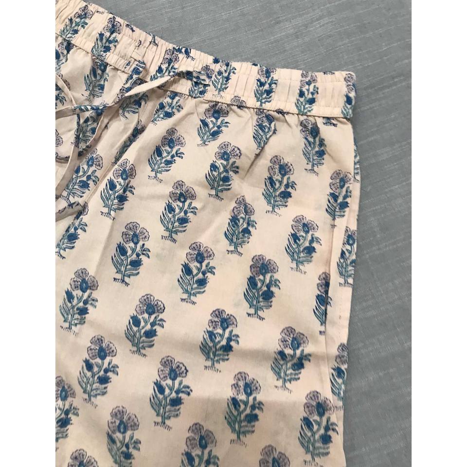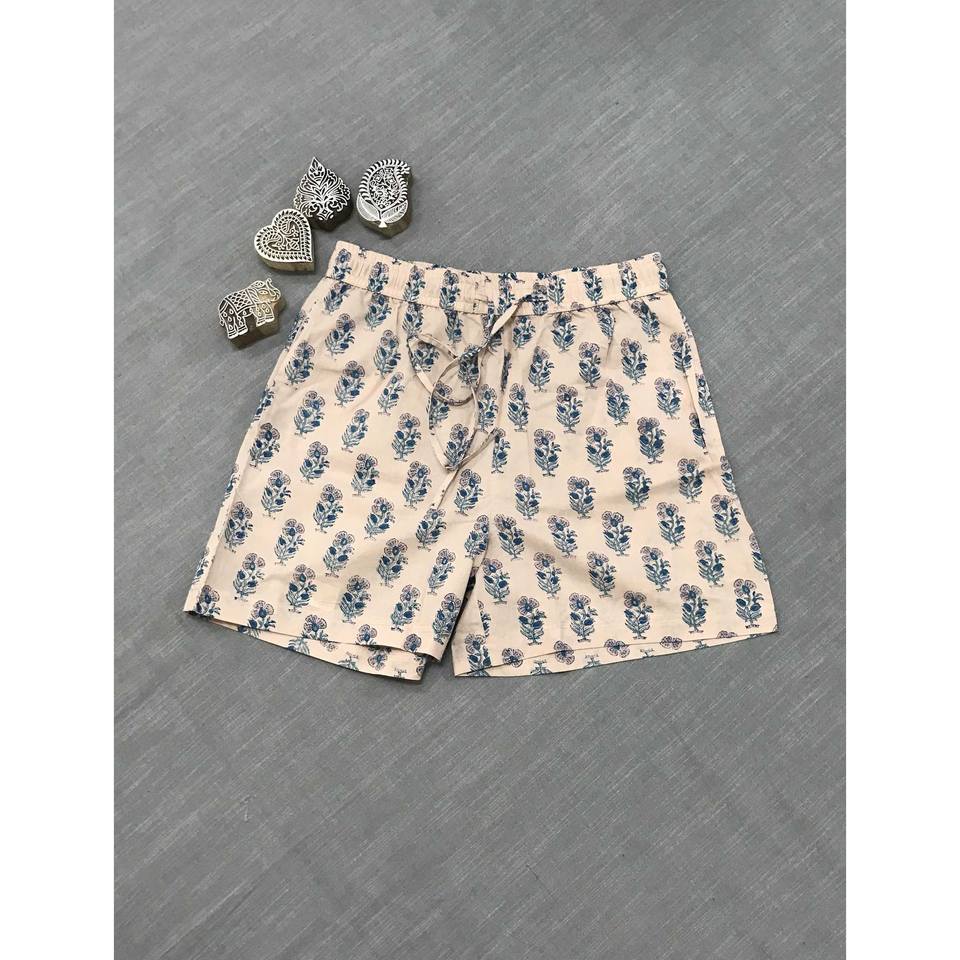 กางเกงขาสั้นผ้าฝ้ายพิมพ์ลายบล็อก 100% - ไซส์เล็ก ระบายอากาศได้ดี เอวกลาง ตกแต่งด้วยลวดลาย