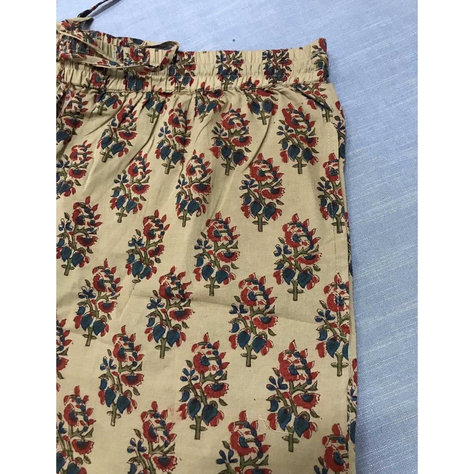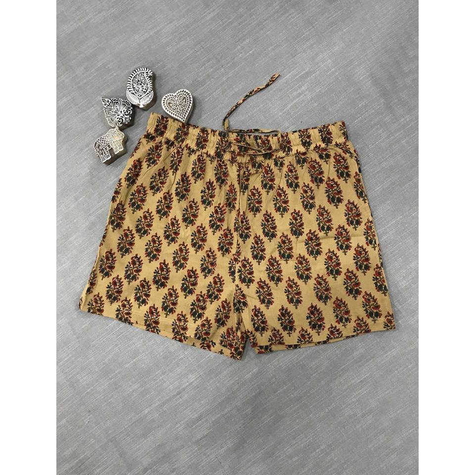 กางเกงขาสั้นผ้าฝ้ายพิมพ์ลายบล็อก 100% - ไซส์เล็ก เอวกลาง ระบายอากาศได้ดี พร้อมลวดลายตกแต่ง