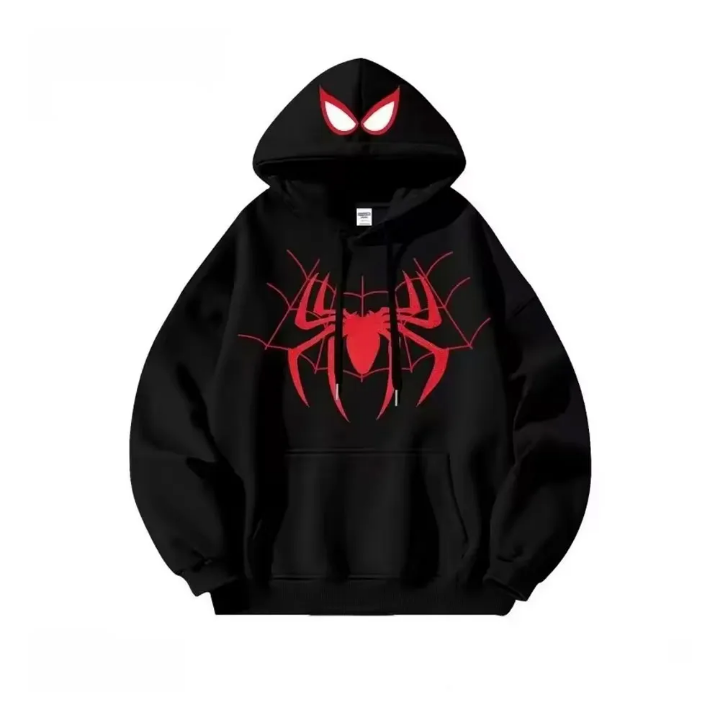 ผ้าฝ้าย 100% เสื้อสตรีทแวร์ระบายอากาศดี เสื้อฮู้ดลายแมงมุมผู้ชาย ผู้ผลิตเสื้อผ้าตามสั่ง เสื้อฮู้ด Spyder แบบยูนิเซ็กซ์ เสื้อฮู้ดลายแมงมุมทรงโอเวอร์ไซส์