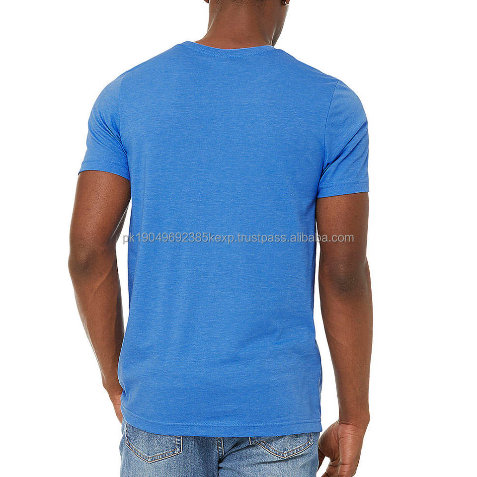 เสื้อยืดคอกลมผู้ชาย ผ้าฝ้าย 100% ระบายอากาศดี ขายส่ง MOQ ต่ำ รับสกรีนลายตามสั่ง สีน้ำเงิน