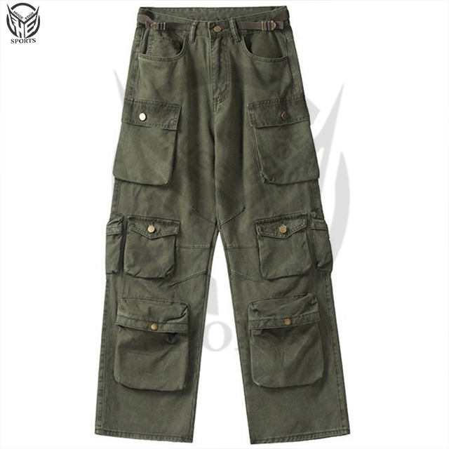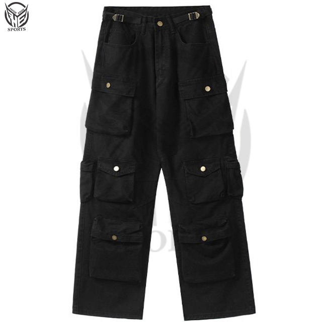 100% Cotton-Canvas Lightweight Casual Loose Fit Cargo Pants with 6 Side Pockets Comfortable Material for Men
