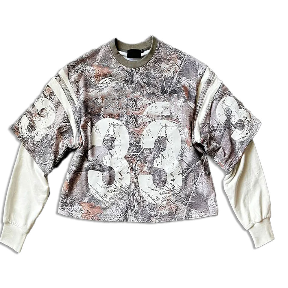 100% Cotton Casual Double Layered Long Sleeve Men's T-shirt Worsted Fabric Hip Hop Style Loose Fit Anti-Wrinkle Breathable