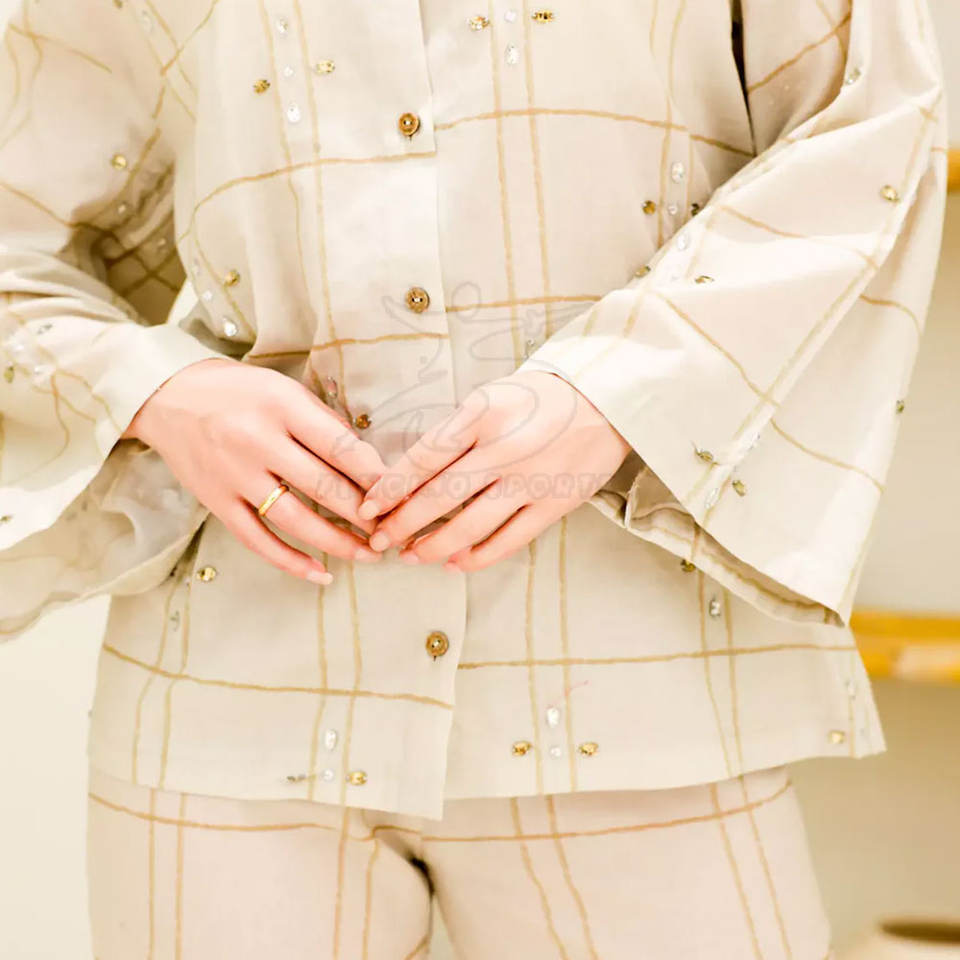 ชุดเสื้อผ้าฝ้ายคอ100% อร์ดแขนยาวแบบลำลองกางเกงแบบกระดุมตกแต่งแบบแห้งเร็วระบายอากาศได้ดีใส่สบายในฤดูร้อน