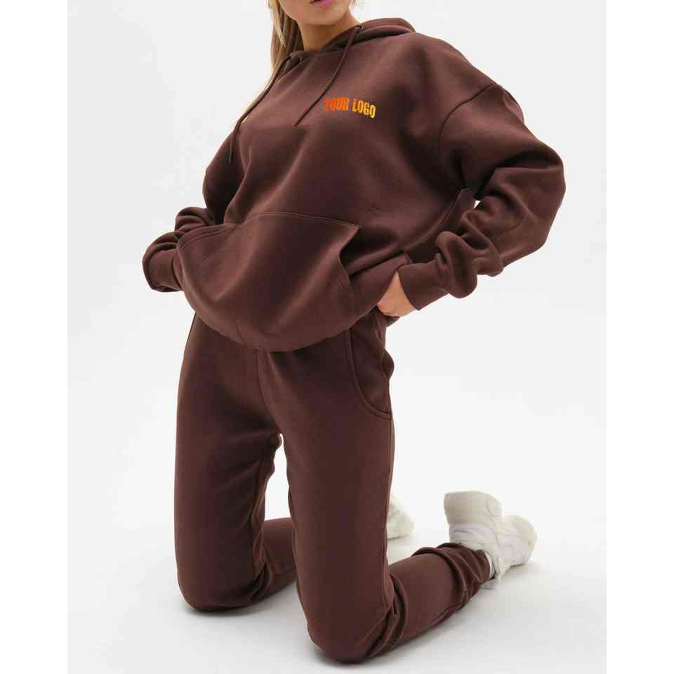 100% Cotton Comfort Winter Gym Sets for Women Oversized High-Quality 400 GSM Fleece Plain Two-Piece Brown Tracksuits