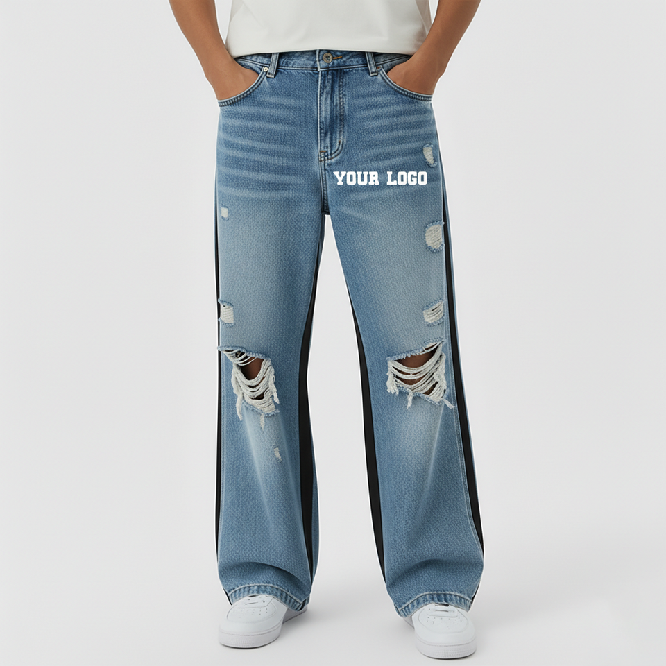 กางเกงยีนส์เดนิมผ้าฝ้าย 100% ทรงตรง สไตล์ฮิปฮอป ขาดๆ รุ่ยๆ ทรงหลวม วินเทจ ล้างสีแบบแอซิด ขากว้าง สำหรับผู้ชาย