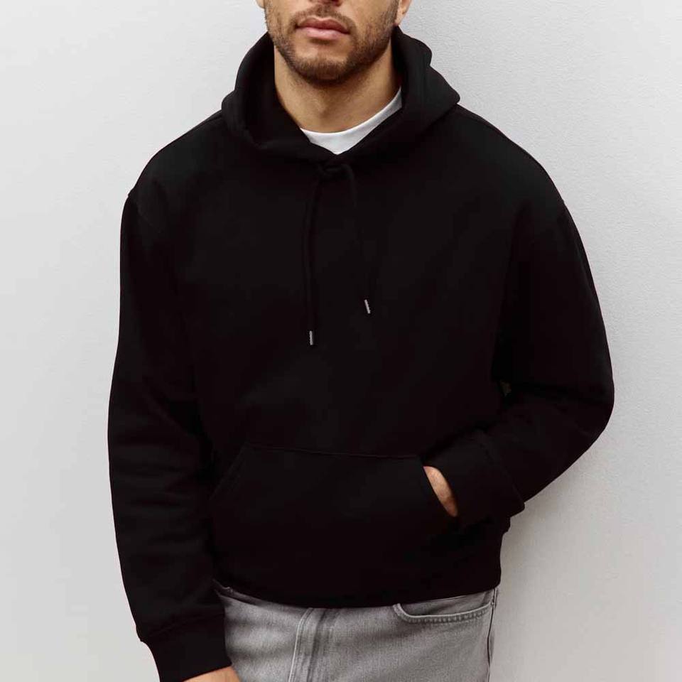 เสื้อฮู้ดผ้าฟลีซคอตตอน 100% สำหรับผู้ชาย ปรับแต่งได้ คุณภาพสูง หนานุ่ม เหมาะสำหรับฤดูหนาว ลายเรียบ มีฮู้ดด้านหน้า