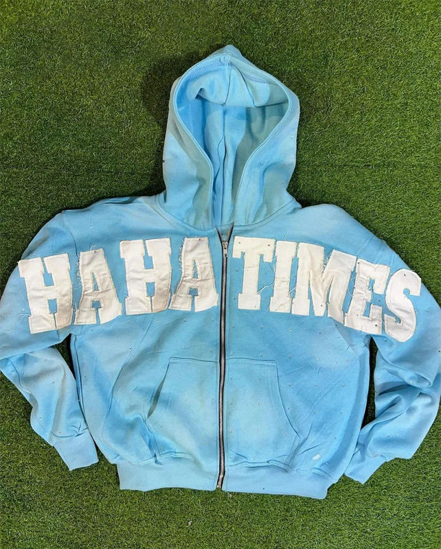 Keywords:Custom Logo Men's Distress Applique Embroidery Hoodies