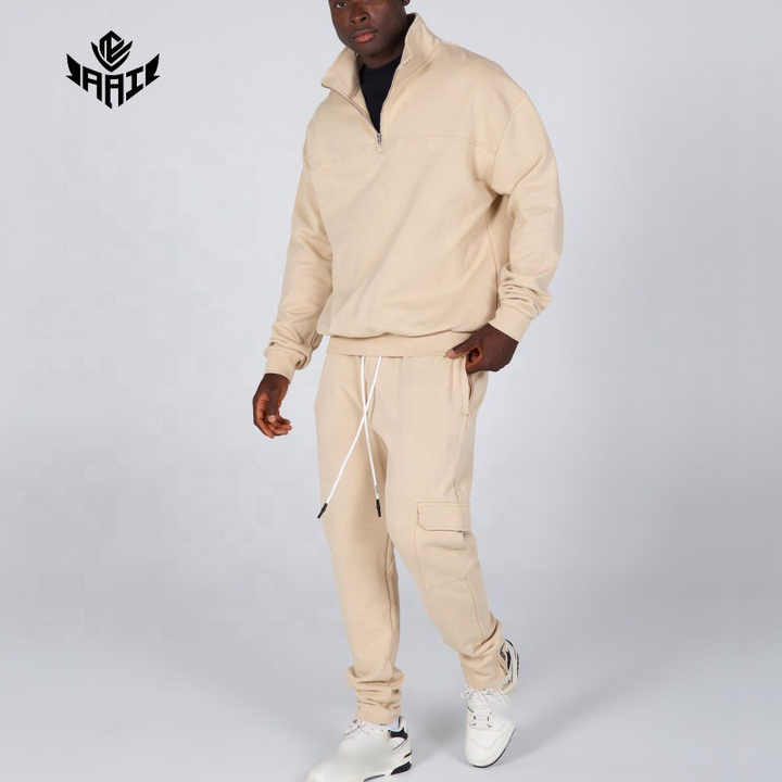 ชุดวอร์มผ้าฟลีซคอตตอน 100% เสื้อฮู้ดซิปครึ่งตัว กางเกงขายาว ชุดลำลองสองชิ้น ชุดกีฬา ขายส่ง