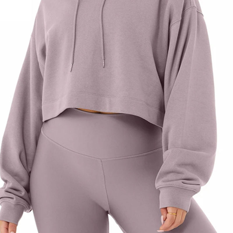 เสื้อฮู้ดครอปผู้หญิงผ้าฝ้ายฟลีซ 100% สีดำ ทรงสวยเก๋ เหมาะสำหรับออกกำลังกาย ฟิตเนส พร้อมโลโก้แบบกำหนดเอง