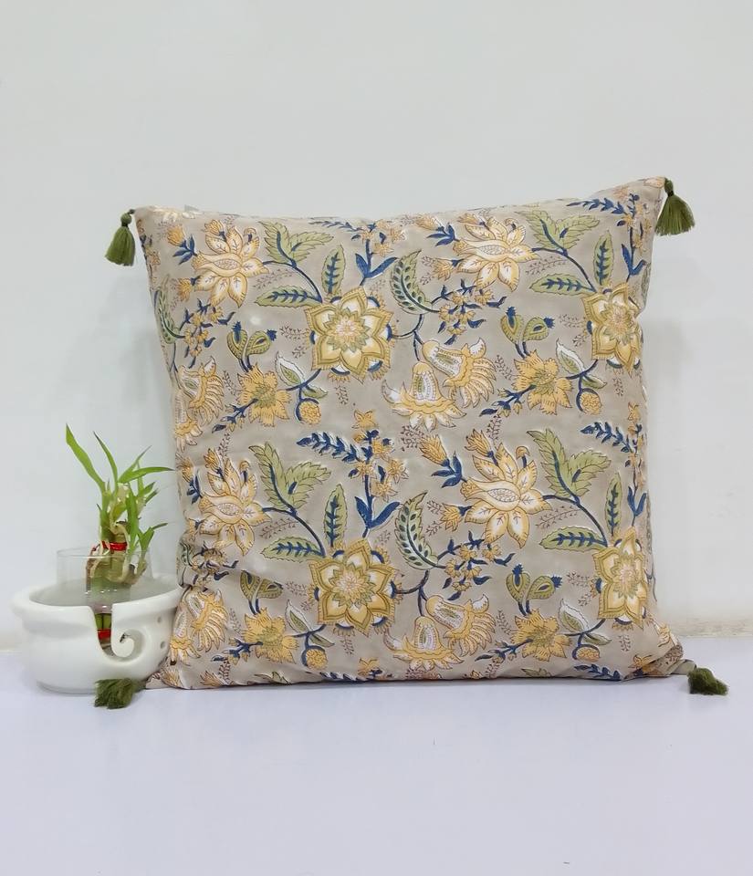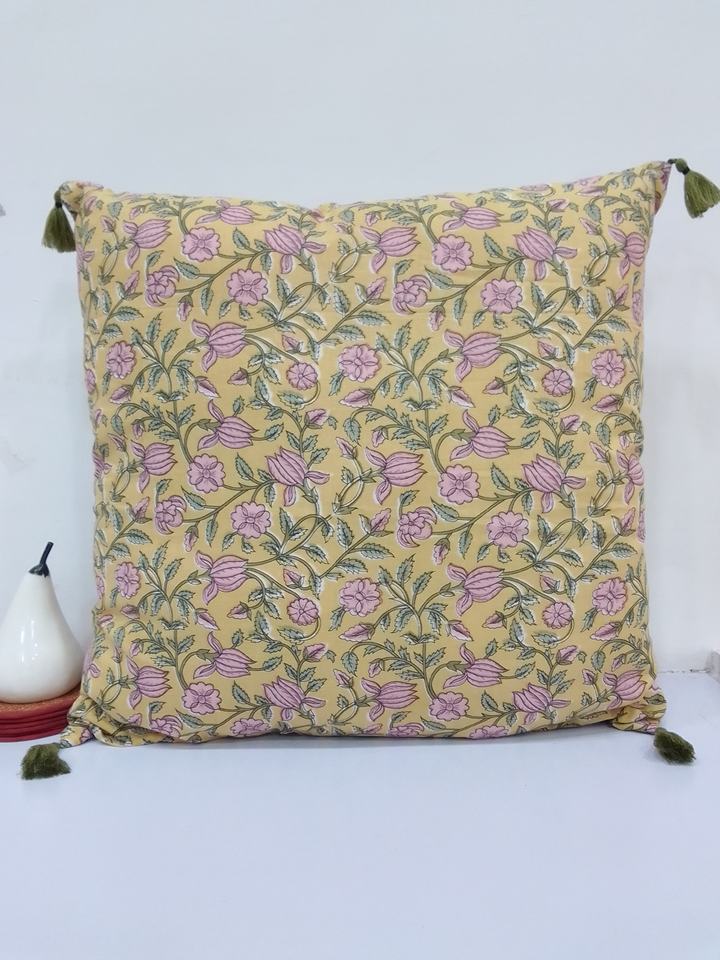 100% Cotton Floral Mini Lotus Yellow Printed Eco-Friendly Customizable Cushion Cover Front Back Buti Pillow Case Customized