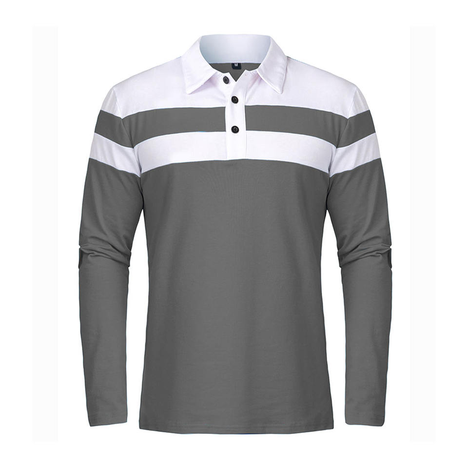 เสื้อโปโลคอปกแบบกำหนดเองแขนยาวผ้าฝ้าย 100% เสื้อโปโลแห้งเร็วสำหรับผู้ชาย