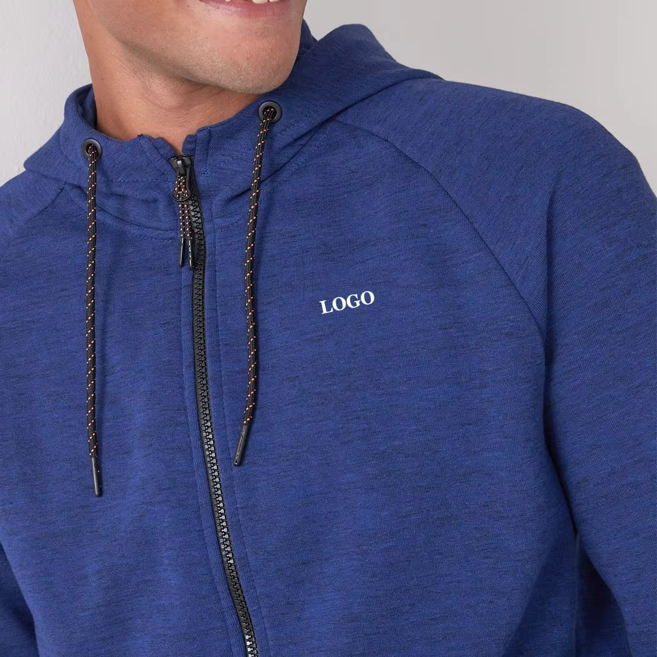 เสื้อมีฮู้ดผ้าฝ้าย100% มีซิปเต็มกระเป๋าสำหรับผู้ชายเสื้อผ้าลำลองผสมผ้าฝ้ายระบายอากาศได้ดีสวมใส่สบาย