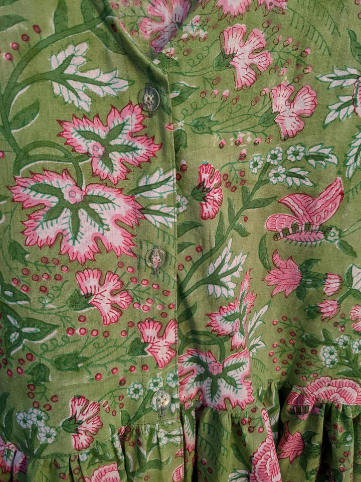 เดรสผ้าฝ้าย100% พิมพ์ลายแบบบล็อกด้วยมือสำหรับฤดูร้อนเดรสผ้าฝ้ายอินเดียปักลายสไตล์ลำลองของตกแต่งแบบปักสวยงาม