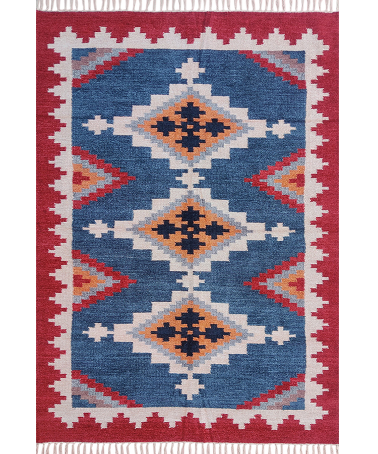 ชุดพรมผ้าฝ้าย100% ทอมือผ้าไหมปักสีน้ำเงิน-แดงสำหรับโถงทางเดิน & พื้นที่นั่งเล่น